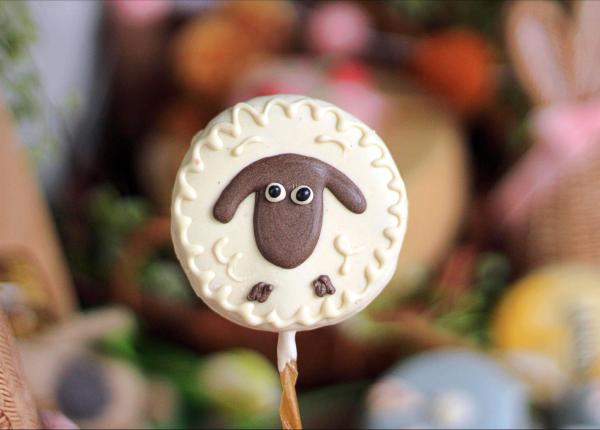Runde, herzig verzierte Kokos-Knusperkekse am Stiel kommen als süße Schäfchen zu euch nach Hause :)